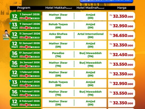 Pendaftaran Haji Mujamalah tahun 2026 mash dibuka.